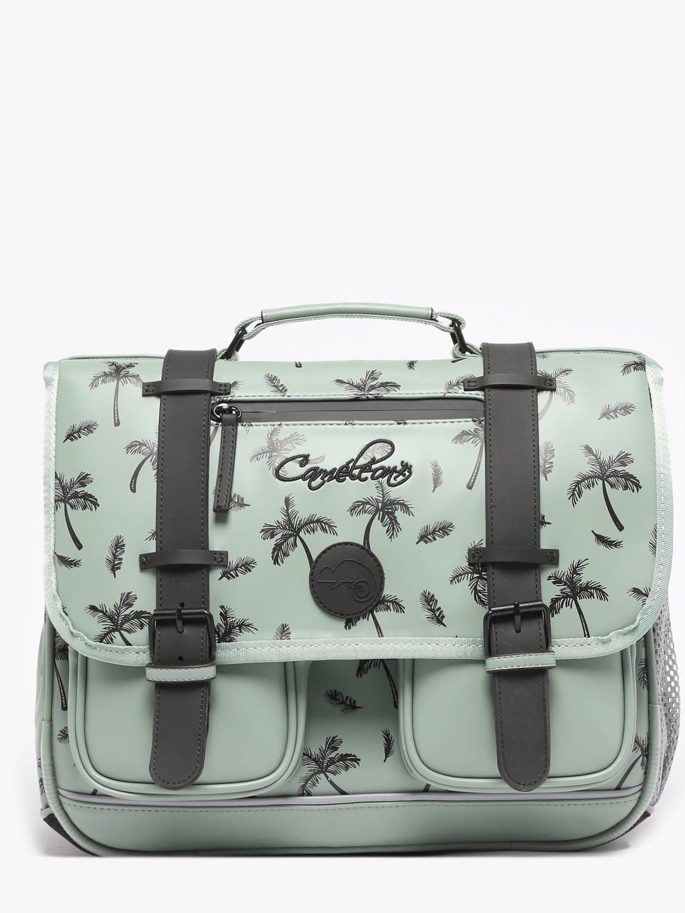 38 cm - 18 litres - 1.5 kg ~ Cartable primaire 38 cm signé Caméléon de la ligne Vintage North. Ce cartable enfant convient parfaitement pour le CP, le CE1 et le CE2. On adore les belles touches vintage avec ses finitions et sa poche à fermeture zippée sur le rabat ! Il se divise en deux grands compartiments pour l'ensemble des affaires d'école. Fonctionnel, il dispose d'une poche intérieure zippée, d'un emplacement spécial règle ainsi que de deux poches à fermeture éclair sur le devant du cartable. Petit plus, ce cartable dispose d'une étiquette nom et d'un emplacement pour la gourde sur le côté. Ergonomique, la poignée et le fond du cartable sont renforcés. Très confortable, le dos et les bretelles sont rembourrés. Ce cartable est imperméabilisé. Côté sécurité, des bandes réfléchissantes sont disposées autour du cartable enfant. Petit plus, une règle est offerte !