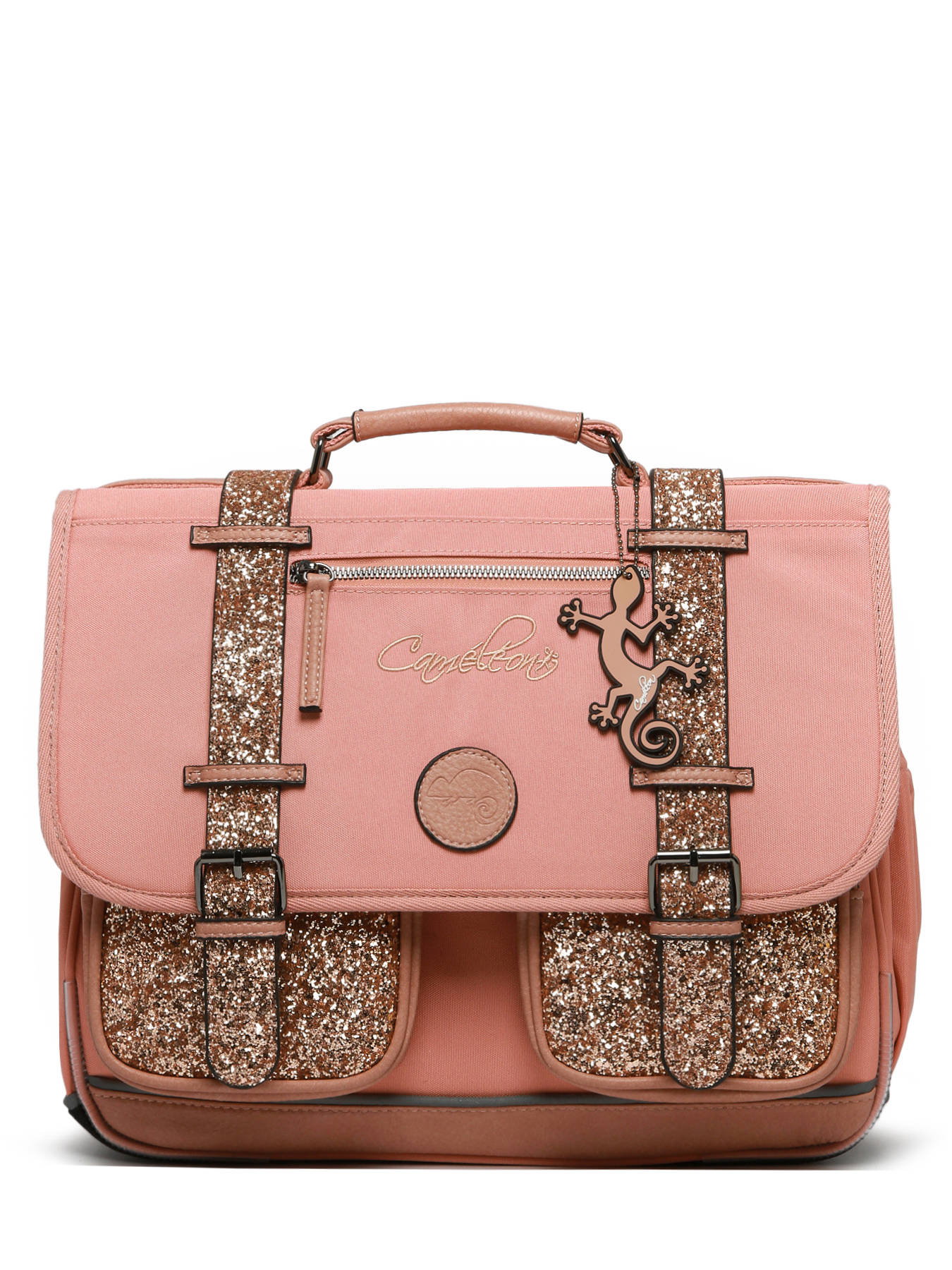 38 cm - 18 litres - 1.07 kg ~ Cartable enfant primaire 38cm de la ligne Vintage Fantasy de chez Caméléon, parfait pour le CP, CE1 et le CE2. Il se divise en deux compartiments séparés par une poche centrale zippée et peut contenir les formats cahiers A4 et 24x32cm. On retrouve à l'extérieur du cartable un emplacement pour la gourde. Pratique, il dispose de deux poches à fermeture éclair sur le devant, idéales pour un petit goûter ou l'agenda. Petit plus, ce cartable dispose d'une étiquette nom. Le fond du cartable est renforcé pour plus de solidité et des bandes réfléchissantes sont disposées autour du sac et sur les bretelles. Conçu pour le confort des enfants, le dos et les bretelles sont rembourrés. Petit plus, la règle est offerte ! Fabriqué en polyester recyclé imperméable.
