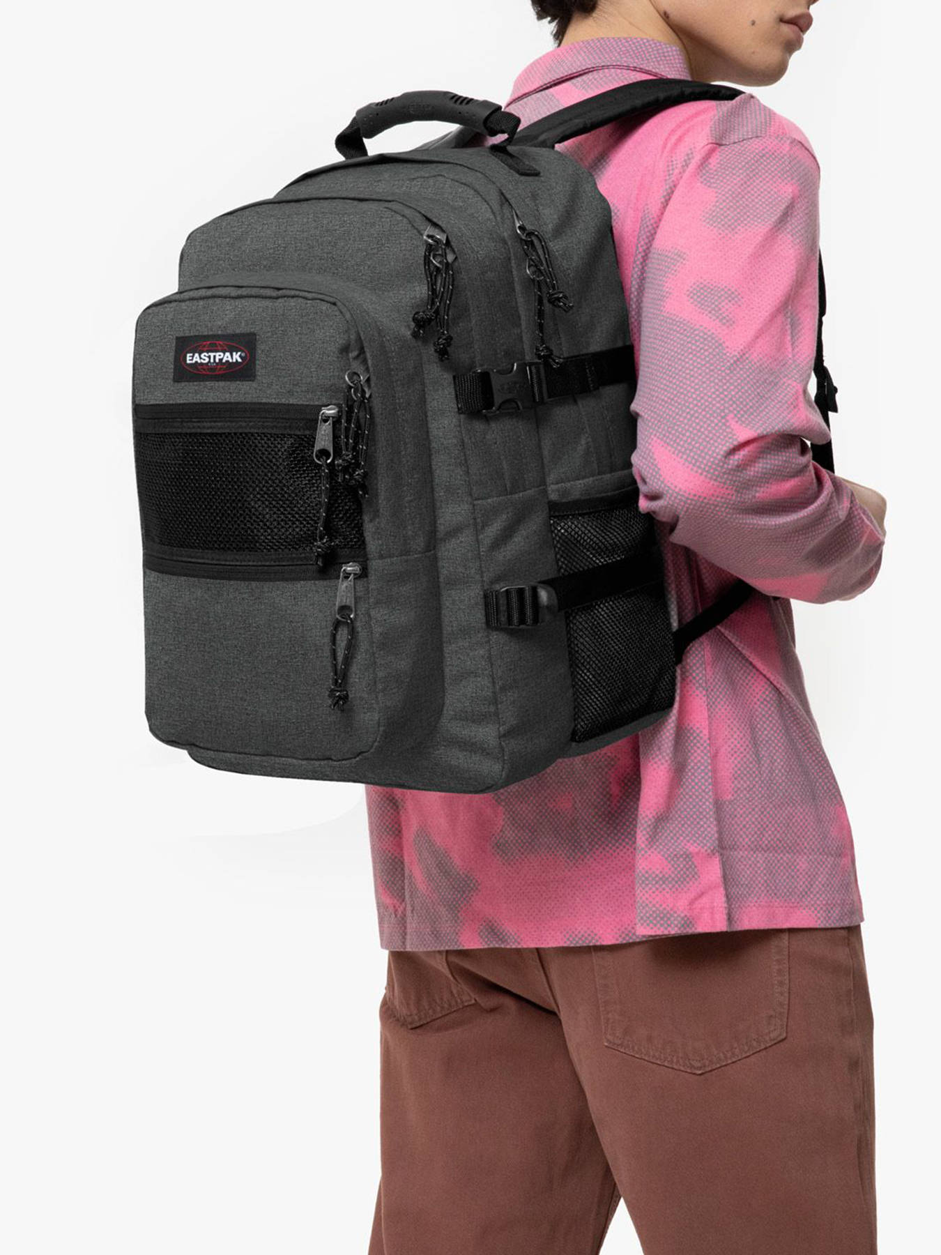 46 cm - 38 litres - 0.89 kg ~ Le sac à dos Eastpak à deux compartiments et poche pour PC 16"" est parfait pour les filles et garçons âgés de 11 à 15 ans et plus. Fabriqué en polyester résistant, il offre une durabilité exceptionnelle pour un usage quotidien. À l'extérieur, il dispose d'une poche avant, d'une poche latérale et d'une poche au dos, toutes dotées de fermetures zippées pour sécuriser vos affaires. Les bretelles réglables et la possibilité de le porter à la main ou sur le dos assurent un confort optimal. À l'intérieur, le sac comprend deux compartiments spacieux, trois poches simples et une poche zippée, idéales pour organiser vos fournitures scolaires et autres effets personnels. Il peut accueillir un ordinateur portable de 16 pouces grâce à une poche renforcée dédiée, ainsi que des dossiers A4, des cahiers et des classeurs de différentes tailles. Ce sac à dos polyvalent combine style, fonctionnalité et confort, idéal pour les élèves et étudiants actifs.