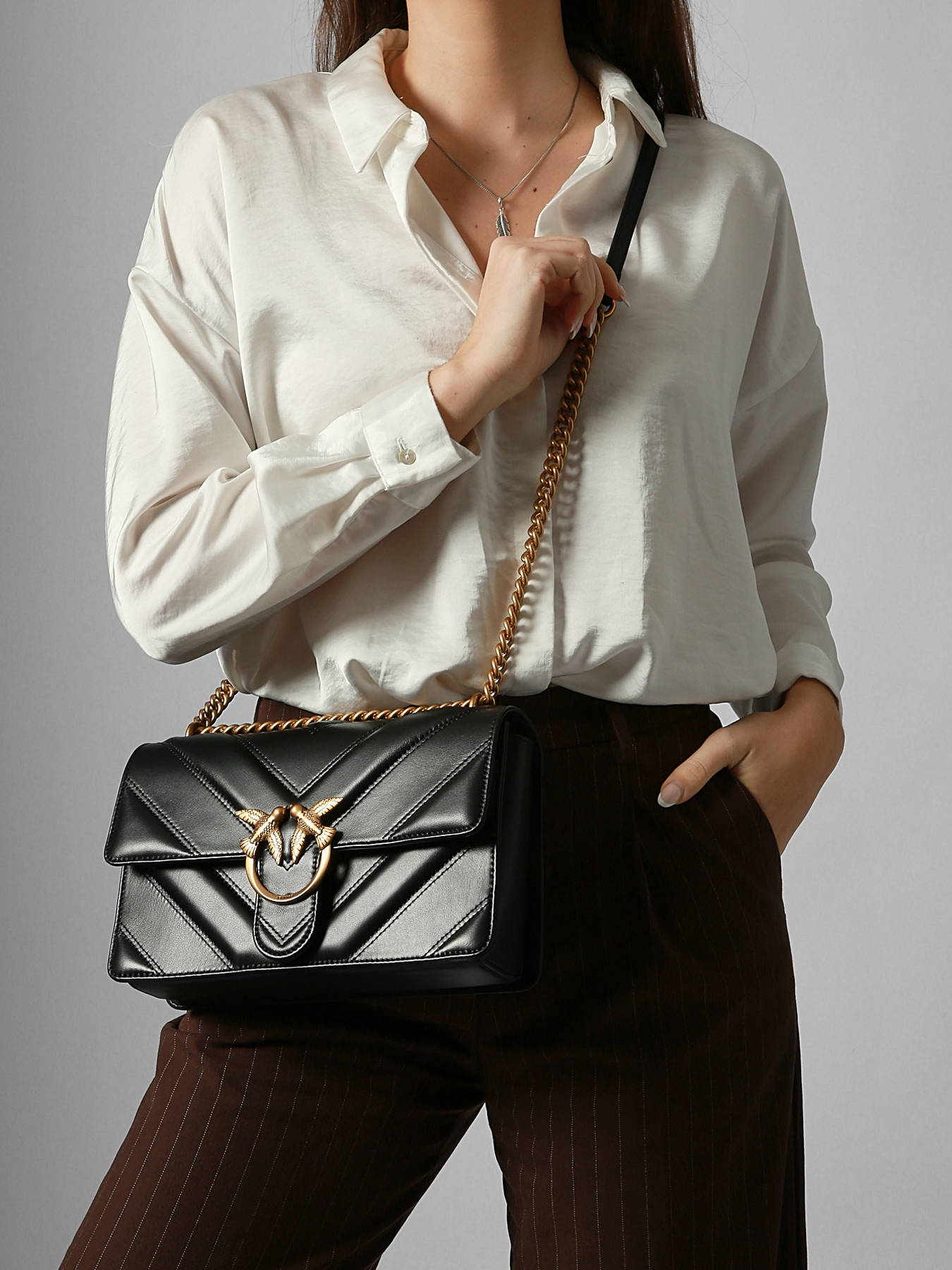 Le sac bandoulière LOVE BAG ICON de PINKO, confectionné en cuir de vachette, allie élégance et praticité. Son rabat à fermeture aimantée offre une touche sophistiquée tout en garantissant un accès facile et sécurisé à vos affaires. La bandoulière réglable permet un porté confortable en bandoulière, s’adaptant parfaitement à toutes vos envies. À l’intérieur, un compartiment principal spacieux accueille vos essentiels du quotidien, complété par une poche simple et une poche zippée pour une organisation optimale. Ce sac iconique séduit par son design moderne et raffiné, idéal pour sublimer toutes vos tenues avec une note chic et féminine.